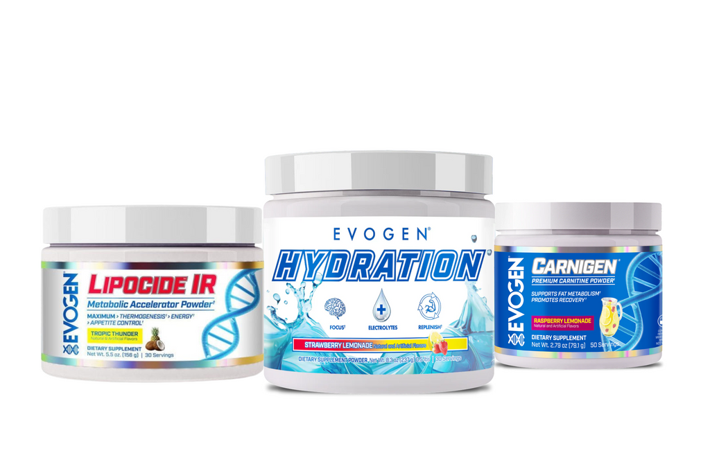 The Shredding Hydration Stack brings together three Evogen products designed to support a more focused training and conditioning setup without turning your routine into a mess of random tubs and capsules.