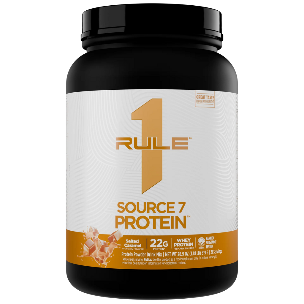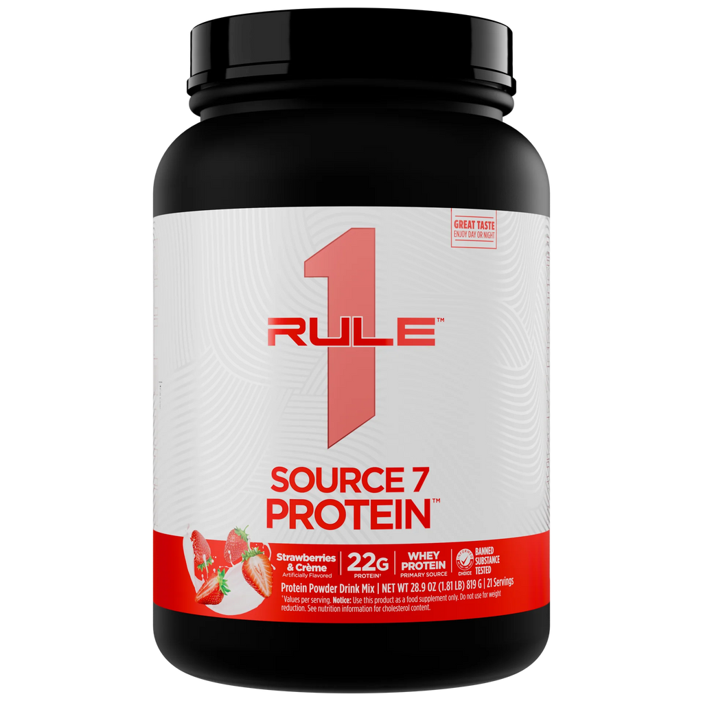 Rule One Source7 Protein combines 7 premium protein sources in one versatile formula: whey protein isolate, whey protein concentrate, hydrolyzed whey protein, native whey protein isolate, micellar casein, milk protein isolate, and pea protein. This staged-release blend provides fast-acting to slow-digesting proteins, delivering 22g of protein per scoop along with naturally occurring amino acids.